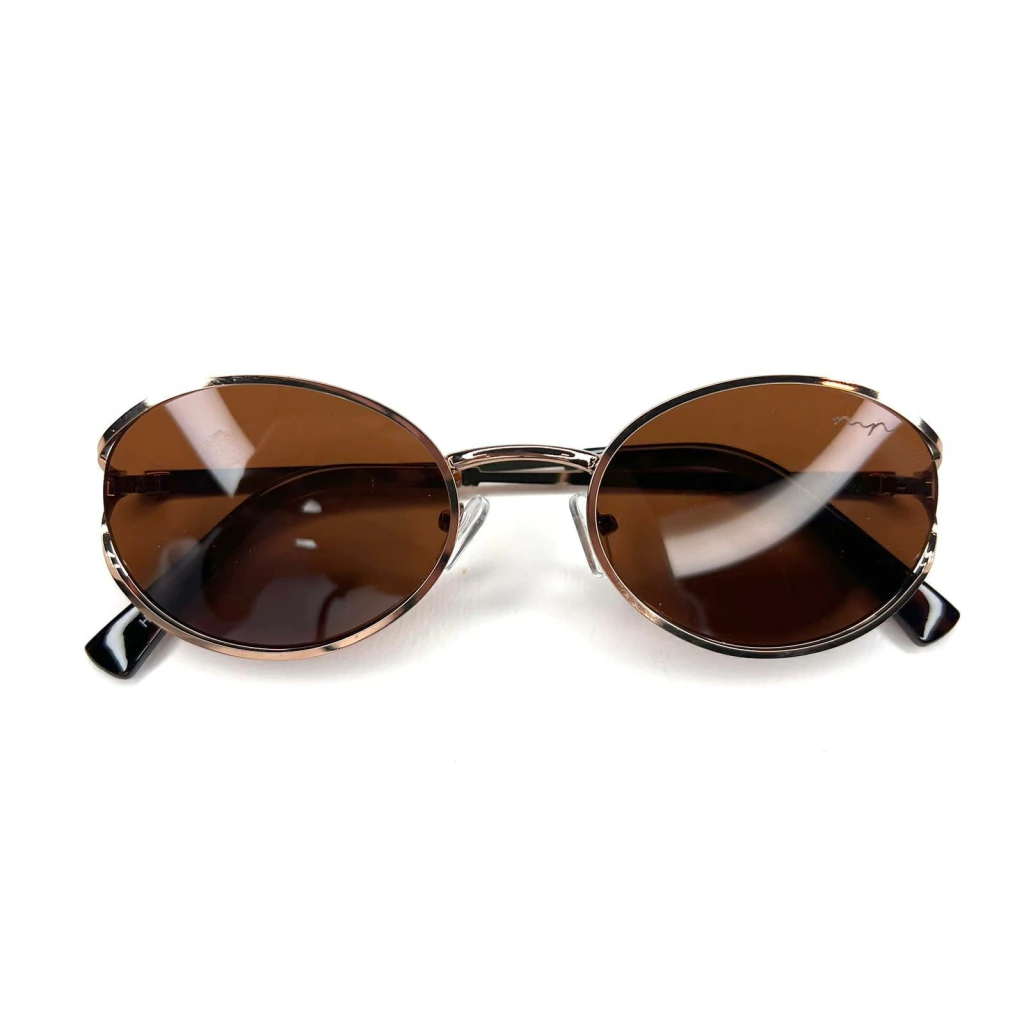 Estilo sóbrio, presença marcante. Este modelo traz lentes marrom intensas que transmitem sofisticação e proteção com um toque clássico. A armação metálica em tom escuro, combinada ao design arredondado e hastes em acetato preto, cria uma estética elegante e atemporal, ideal para todos os momentos do dia.